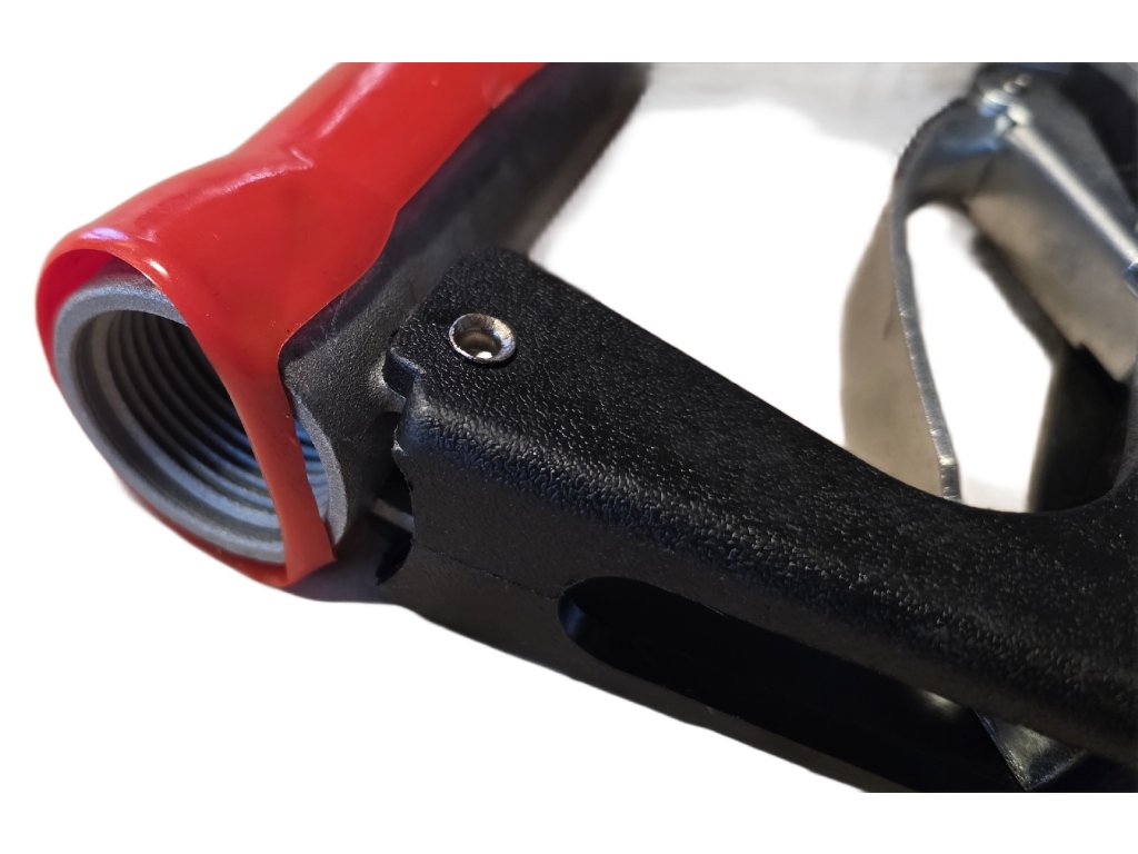 Automatická výdejní pistole (dále jen „pistole“) s integrovaným průtokoměrem je zařízení určené k ovládání toku kapaliny do nádrže nebo kontejneru. Pistole sama automaticky přeruší tok při dosažení naplnění (proti přetečení) a průtokoměr zaznamenává průtok v reálném čase pro přesné dávkování. Výstupní trubice s vnitřním průměrem 1" je dimenzována pro bezpečný průtok až 45 litrů za minutu.