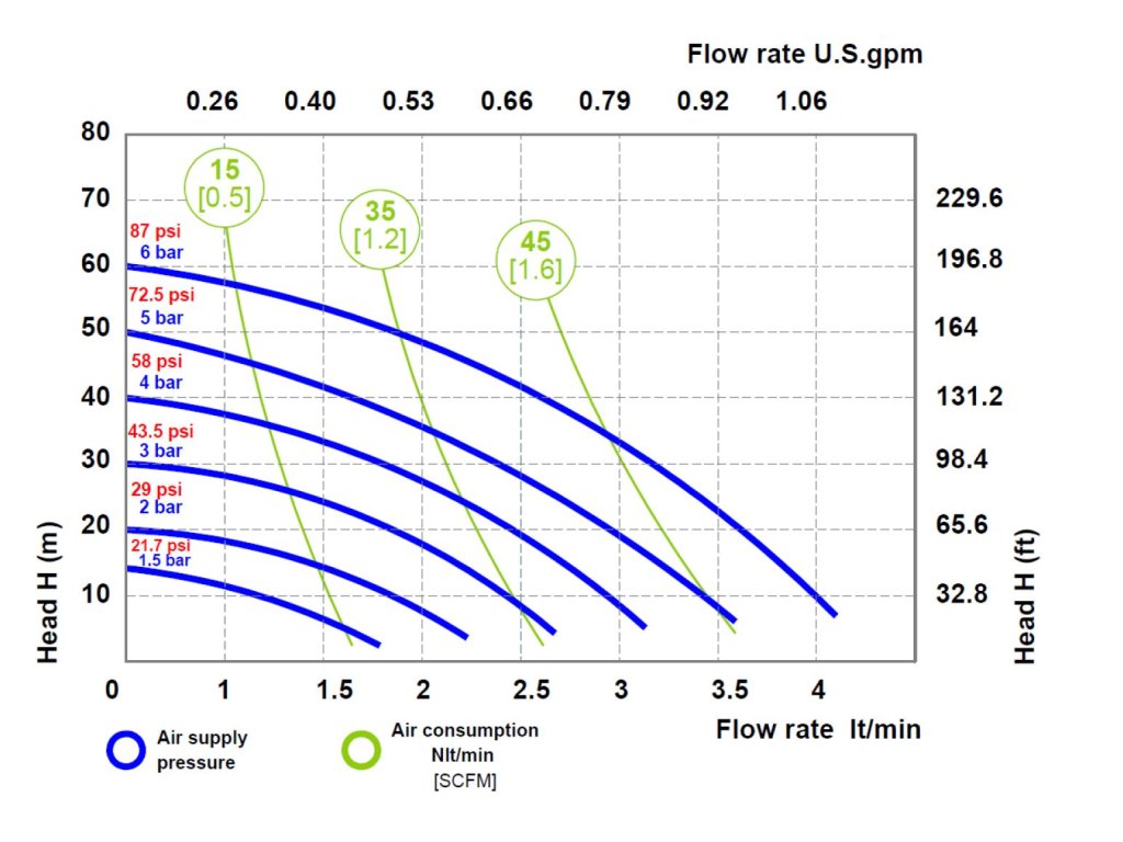 | Max. výtlak 1 bar: | 6 bar (60 m) |